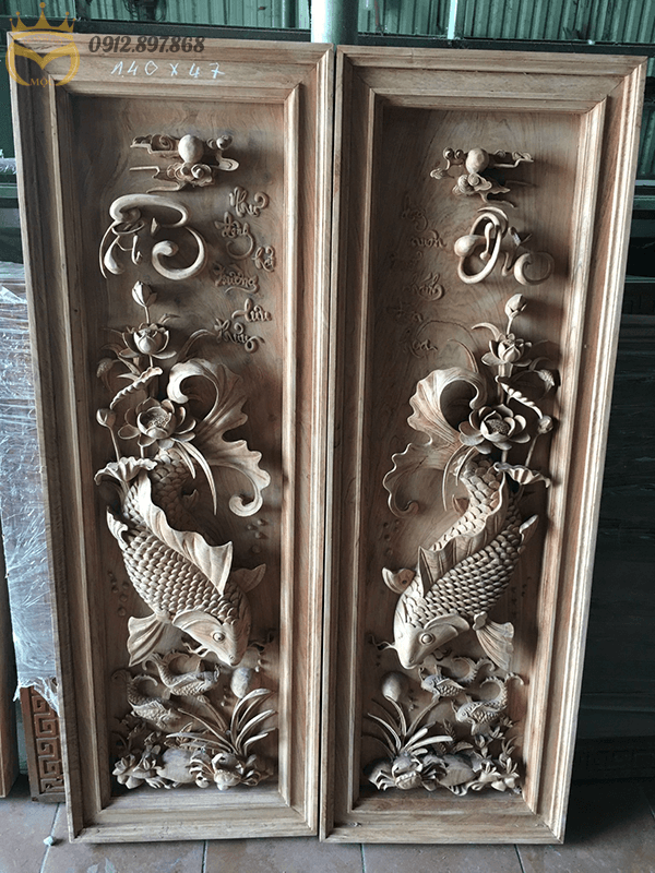 Quy cách | Gồm 2 bức Cá đục nổi 4D kênh bong trên nền gỗ |